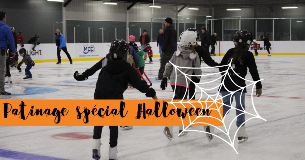 Vous êtes invités à un patinage spécial Halloween avec musique d’ambiance et jeux d’éclairage.