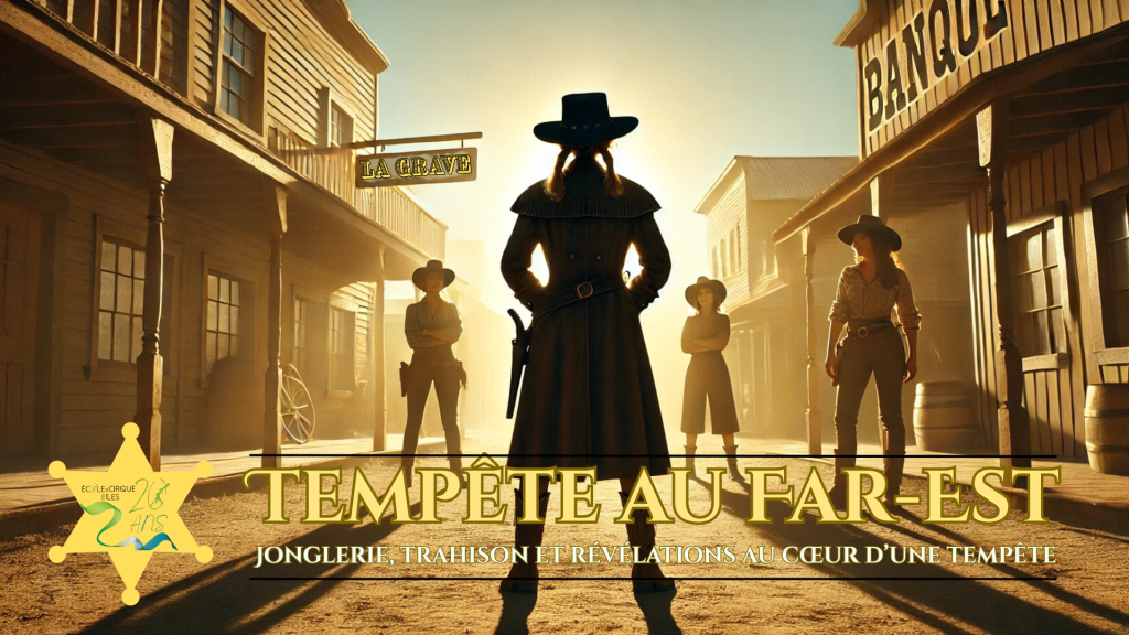 Tempête au Far-Est vous plonge dans l’histoire palpitante d’une shérif, de deux voleuses et d’une directrice mystérieuse, alors qu’une tempête menace de tout emporter. Trapèze, monocycle, jonglerie, acrodanse et plus encore vous attendent dans ce spectacle de cirque électrisant, rempli de suspense et d’émotion. Sauront-elles échapper à la tempête… ou y seront-elles englouties?