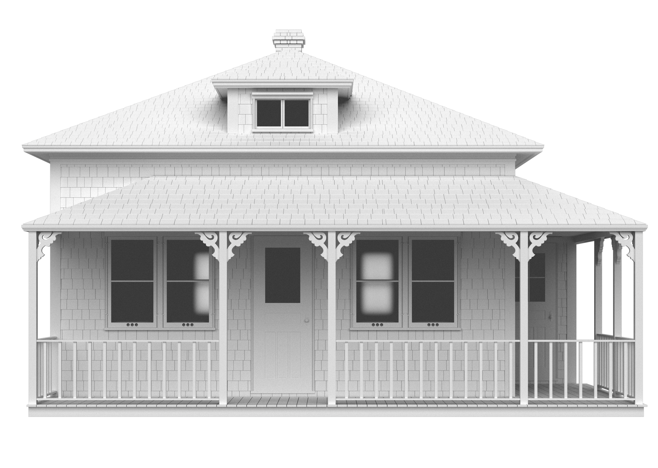 De format plus petit, son volume est compact, généralement carré ou légèrement rectangulaire entre 16 et 24 pieds de côté. La maison est construite sur un seul niveau, parfois avec un comble habitable. Sa toiture à quatre versants, coiffée d’une lucarne en croupe centrée, lui donne une allure reconnaissable et cohérente avec sa grande sœur à deux étages. Le revêtement mural en bardeaux de cèdre et la toiture en bardeaux d’asphalte assurent une intégration harmonieuse au paysage et une continuité avec le savoir-faire local.