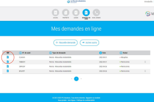 Lorsque votre permis aura été délivré, vous recevrez un courriel contenant un lien qui mènera vers votre dossier. Cliquez sur ce lien ou accédez à votre dossier en vous connectant à l’application Voilà et en cliquant sur Demandes en ligne.